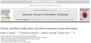 Obesidade, Status de Saúde Metabólica e Desfechos Adversos: Uma Análise de Coorte do UK Biobank Obesity, metabolic health status, and adverse outcomes in men and women American Journal of Preventive Cardiology Available online 14 March 2026, 101556 https://www.sciencedirect.com/science/article/pii/S2666667726001509#:~:text=Condensed%20Abstract,before%20overt%20metabolic%20dysfunction%20manifests. Este documento sintetiza os achados de um estudo de coorte prospectivo de larga escala, publicado no American … Ler mais